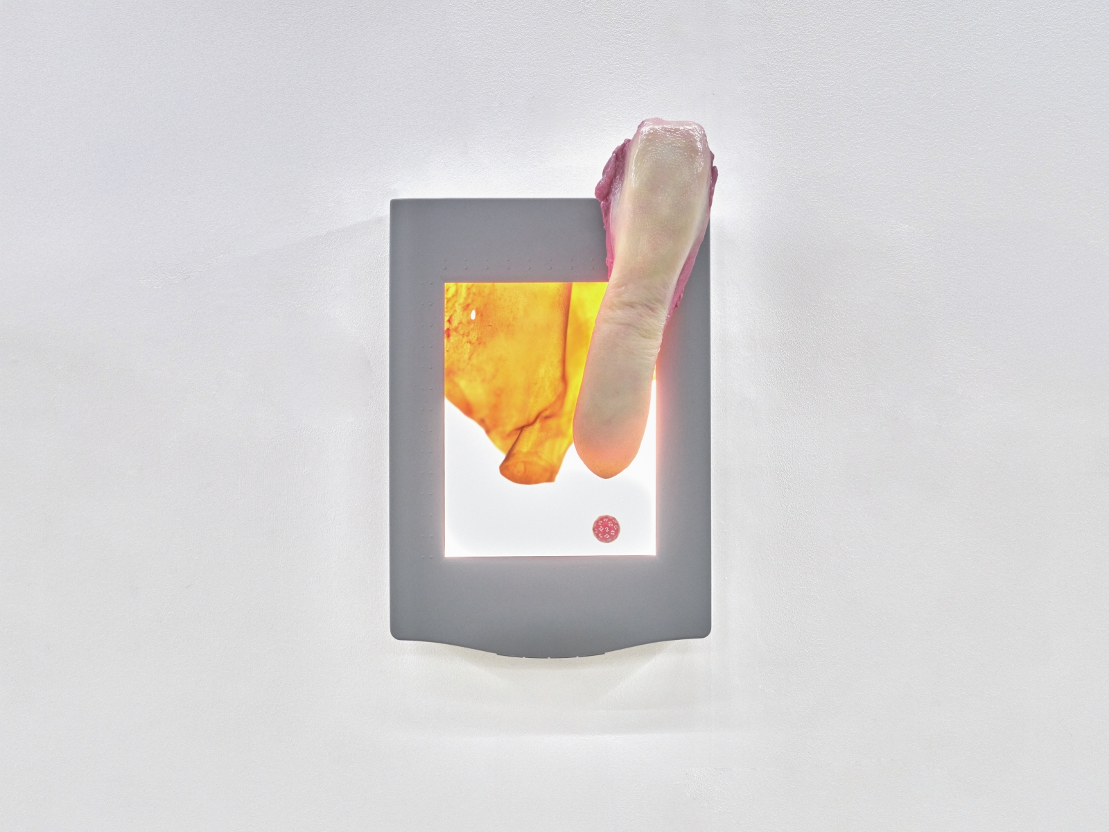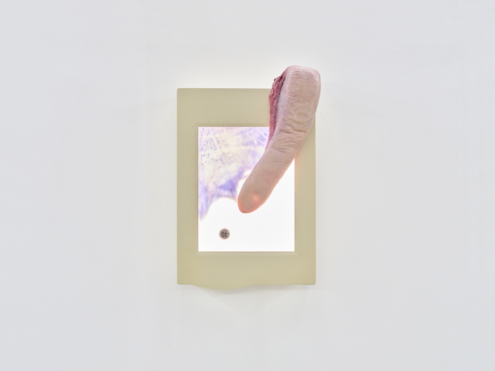 한편,〈Domesticator〉는 소의 또 다른 신체 부위를 기계화한 작업이다. 평판 스캐너 위 실리콘으로 만든 소의 혀가 놓여 있고, 스캐너 유리 아래에서 굴러다니는 주사위를 따라 느릿하게 좌우로 움직인다. 스캐너와 그 안의 광학 문자 인식(OCR) 소프트웨어는 인쇄물을 숫자 문자열로 변환하며, 방대한 디지털 텍스트 아카이브를 확장시키는 데 중요한 역할을 해왔다. 〈Domesticator〉는 이러한 언어의 순환 과정을 시각화한다. 언어가 예측으로, 그리고 다시 언어로 되돌아오는 회로를 형성하며, 혀에서 페이지로, 페이지에서 코드로, 그리고 다시 음성으로 이어지는 순환을 보여준다.