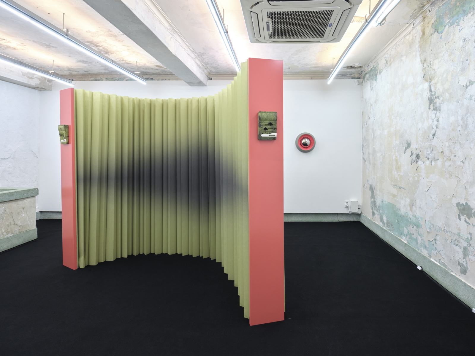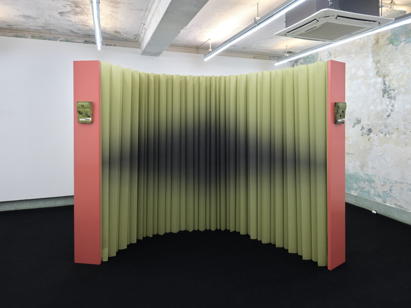 Chain-of-thought》은 점차 퇴화해가는 하드웨어를 활용한 네 개의 연작을 통해 이렇듯 닮은 붕괴의 메커니즘을 탐구한다. Model Collapse〉와 함께 전시되는 Twisted Pairs〉는 벽걸이 전화기를 연상시키는 조각 연작으로, 서로 맞물린 소의 귀 주형을 부식된 가시철사로 연결해 제작되었다. 19세기 미국이 ‘마지막 개척지(Last Frontier)’를 확장하던 시기, 사유지를 구분하기 위해 세운 소 울타리는 지역 간 통신망을 잇는 전신선으로 전환되며 원시적 통신 네트워크를 형성했다. 이는 오늘날 데이터센터가 발전소 위에 병합되는 구조의 전신이기도 하다. 〈Twisted Pairs〉는 간헐적으로 서로를 향해 휘파람 소리를 내보내며, 끊어진 전력망 속을 떠도는 잃어버린 신호처럼 공명한다.