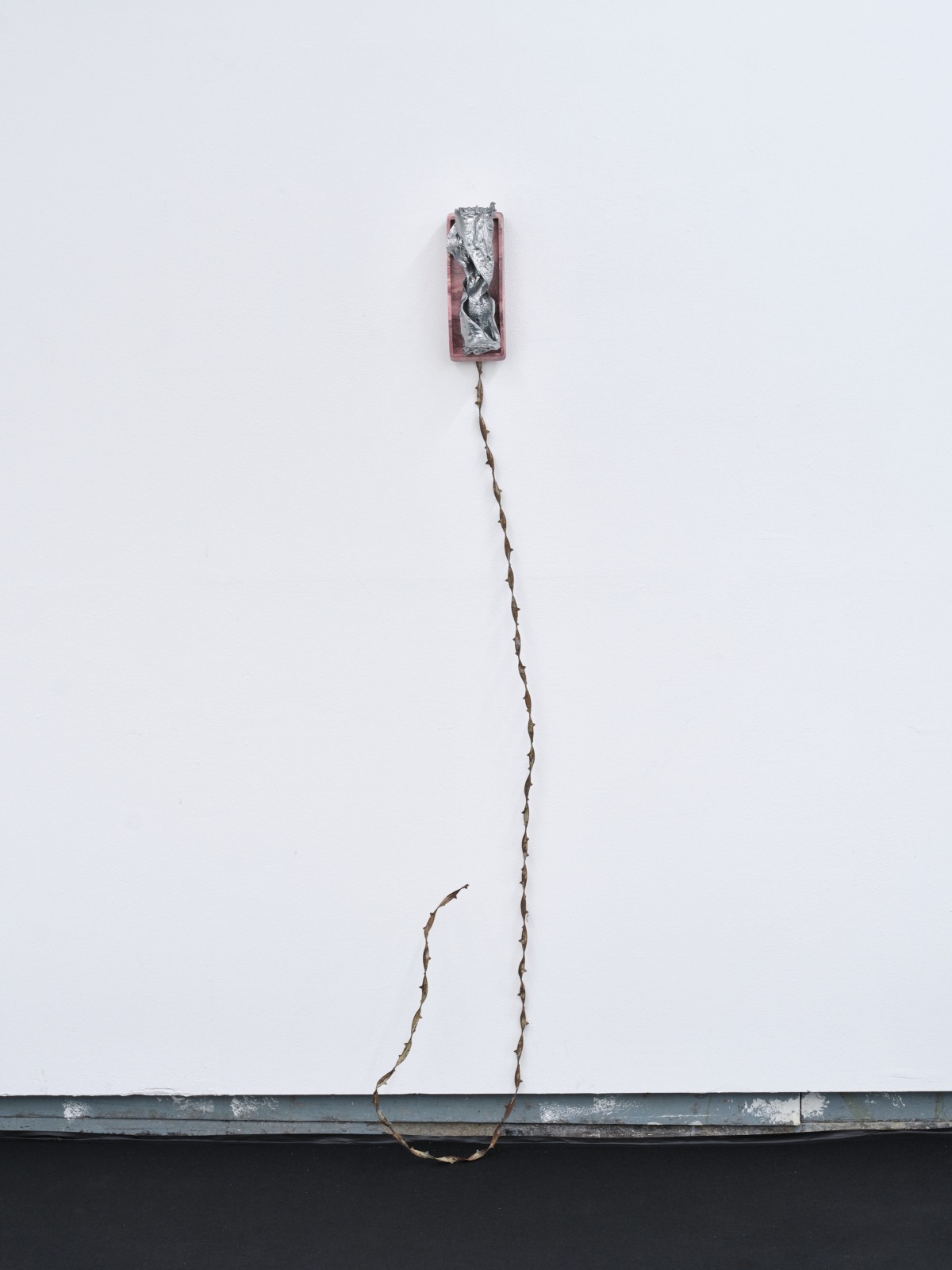 “Chain-of-thought” traces these parallel dynamics across four bodies of work that reanimate obsolescing hardware. Accompanying Model Collapse, there are Twisted Pairs, a series of sculptures that resemble wall-mounted telephones, made from cast cow ears nestled into each other with a cord of corroded, barbed wire. As America’s “Last Frontier” was colonized in the 19th century, private cattle fencing became transmissions lines for the spread of telecommunications through rudimentary local networks, a precursor to the way data centers now graft onto power-plants. Every now and then Twisted Pairs emit a whistle to one another, like lost signals from a severed grid.