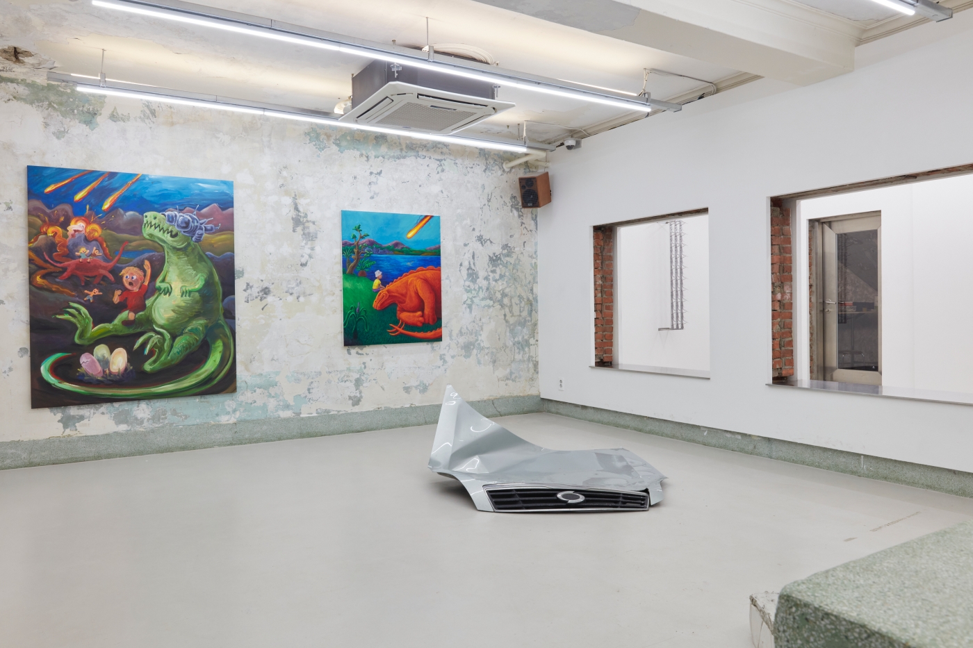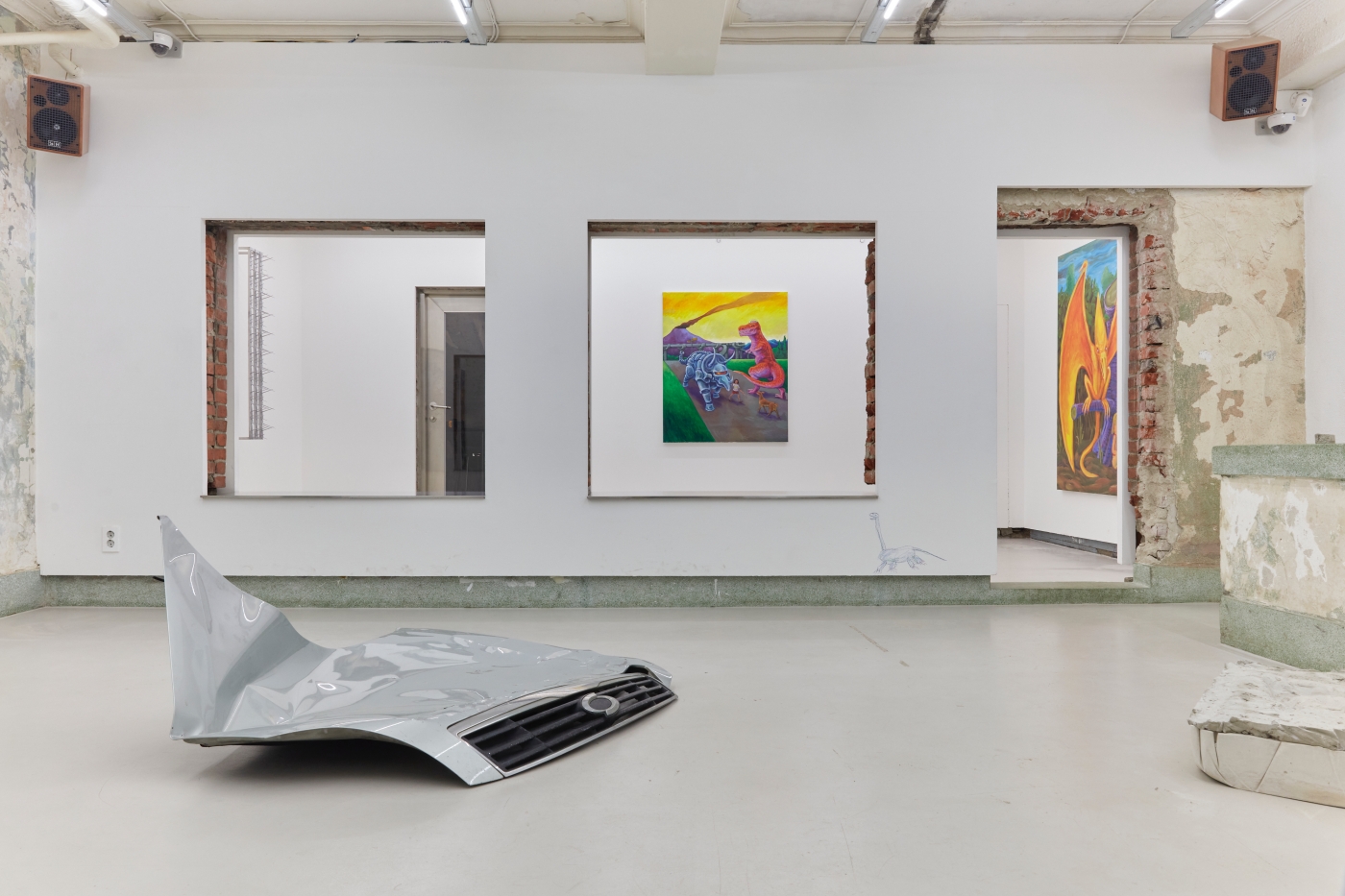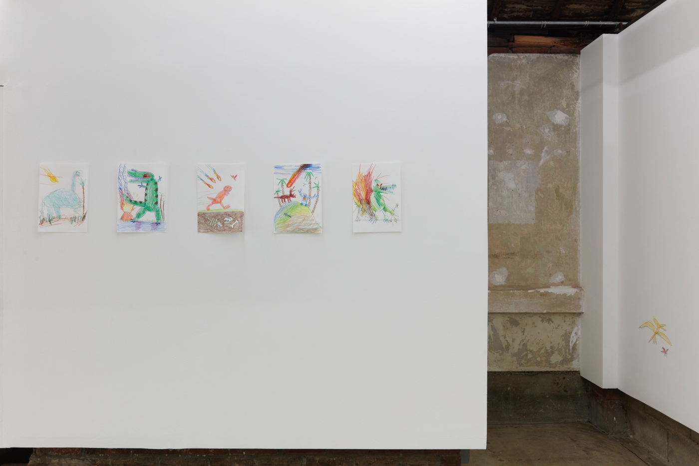 Curation, Text by Sein KimWhat is the true art of the dinosaur? The dinosaur is but an image of our fossilized backward projection, predating humanity, perpetuated by an imagination as large as their presumed size. Just as the Chinese character gong (恐) in the Korean word "dinosaur" means "fearful" but also "perhaps" or "speculatively", the image of the dinosaur must be painted with the inevitable barrenness of factuality. And that limitation can't be overcome by going back in time, because we simply did not exist back then.