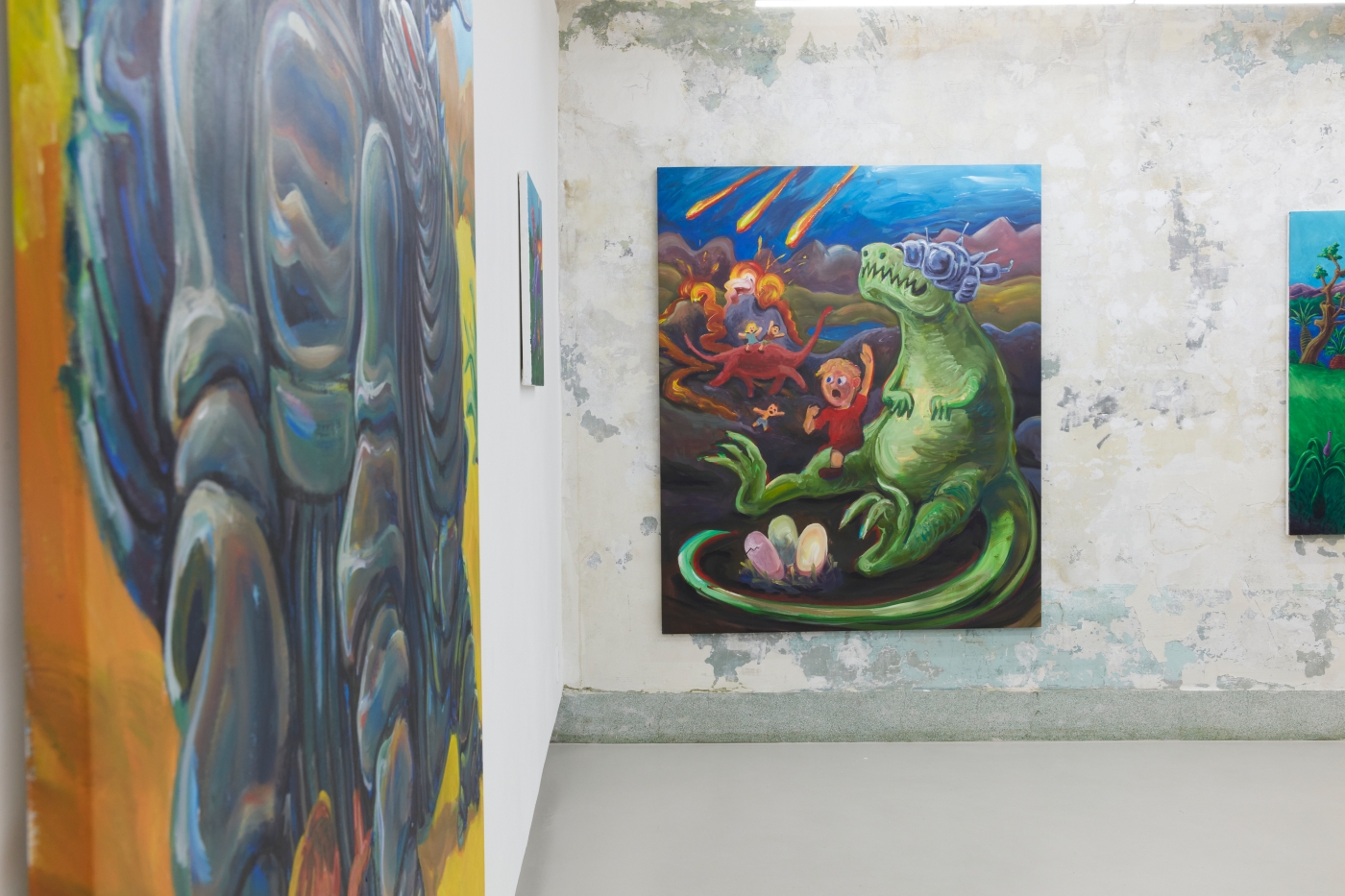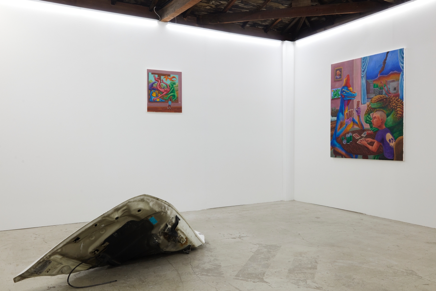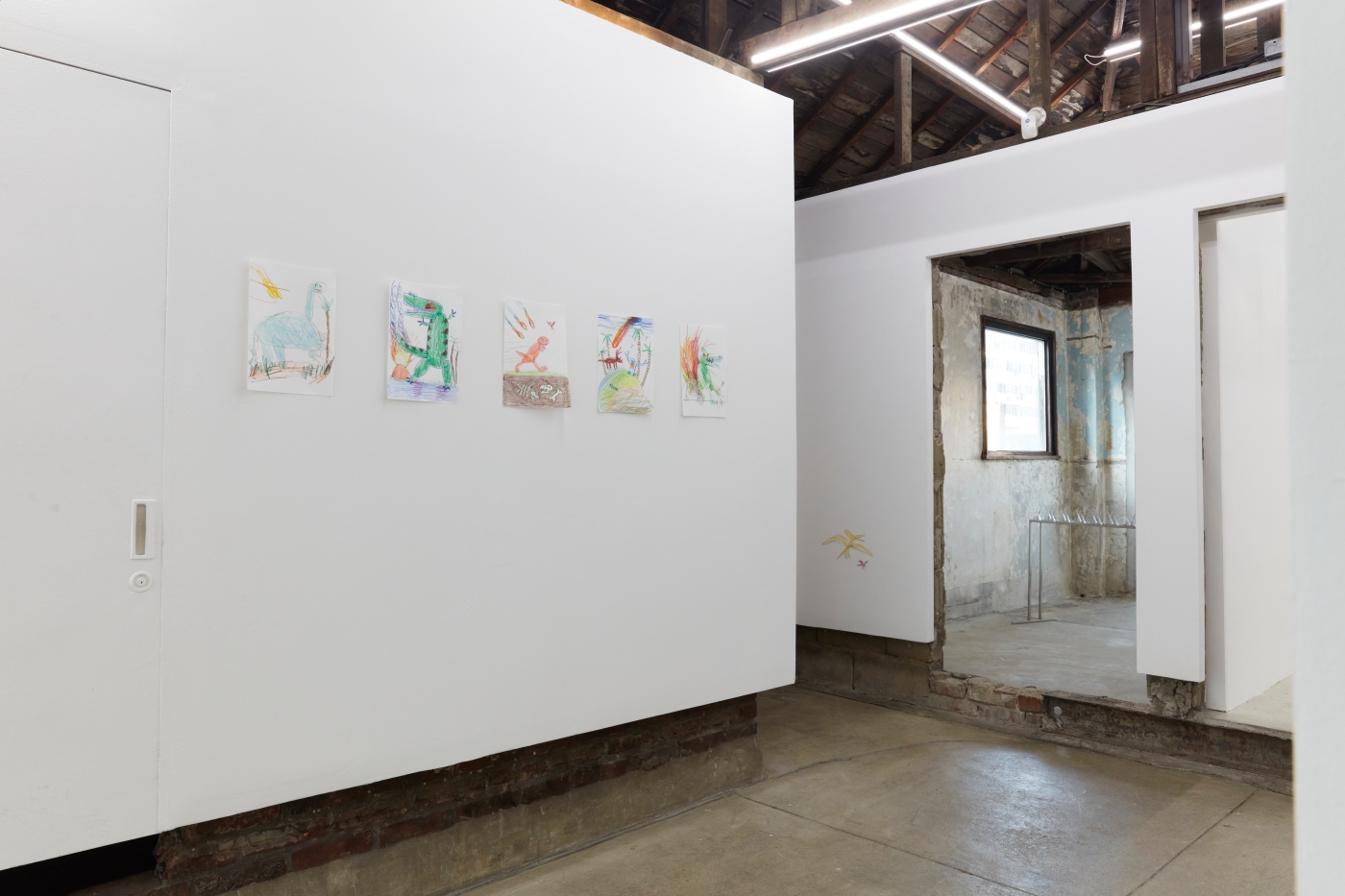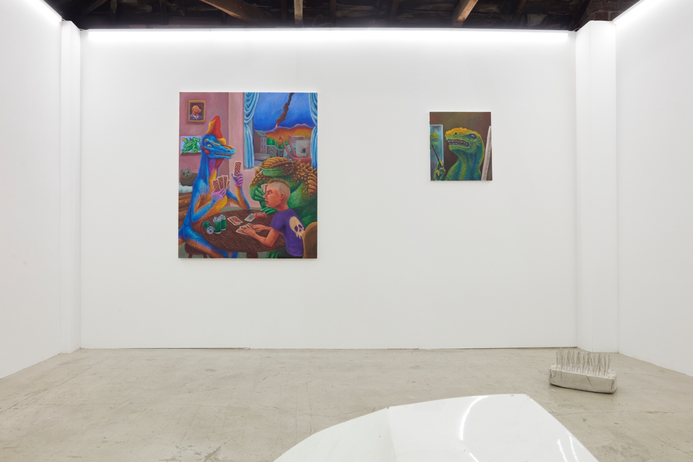 Curation, Text by Sein KimWhat is the true art of the dinosaur? The dinosaur is but an image of our fossilized backward projection, predating humanity, perpetuated by an imagination as large as their presumed size. Just as the Chinese character gong (恐) in the Korean word "dinosaur" means "fearful" but also "perhaps" or "speculatively", the image of the dinosaur must be painted with the inevitable barrenness of factuality. And that limitation can't be overcome by going back in time, because we simply did not exist back then.