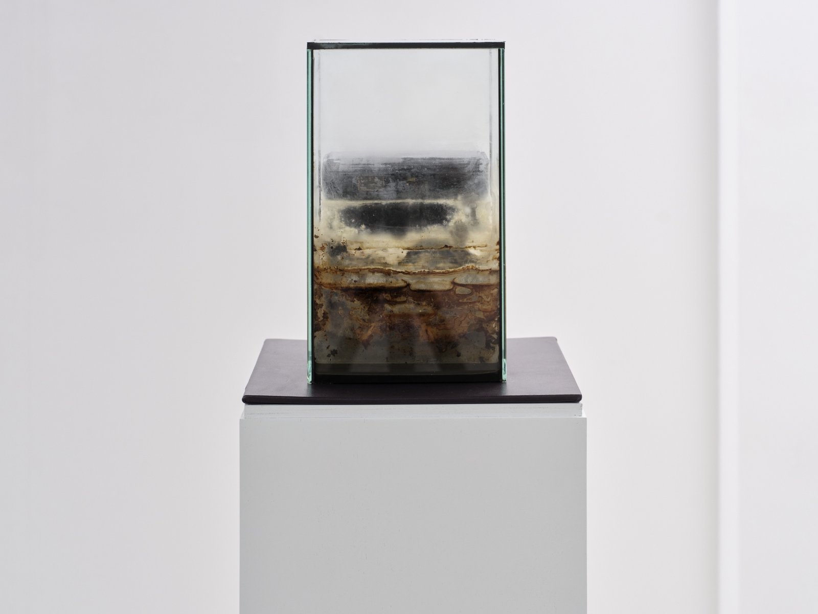 Hardy Hill scratches the surface of aluminium to expose the metal’s interior; Leonard Giller dismantles anti-theft magnets to reveal hidden structures. Sollee Kim raises sculptures once lying flat on the ground into vertical forms, reversing the depth and orientation of space—revealing what lay beneath and blurring the line between inside and out. Rosario and Simon distort and refract sightlines and scenery through dark glass structures formed by breath. Muyeong Kim leaves a void where water once stood, erasing the boundary between surface and interior. These works erase the centre and obscure the outlines of space, leaving form and meaning suspended in ambiguity. Arthur Marie removes focal elements from his paintings to destabilise the viewer’s gaze, while Mark installs vertical structures that redirect attention to the ground, denying access to the inner space. Henry Belden, in a video work of twin brothers recalling memories in the first person, dismantles the singular voice of narration and dislocates the position of presence itself. These works prompt a subtle disorientation, suggesting presence as something decentered and gently trembling.
