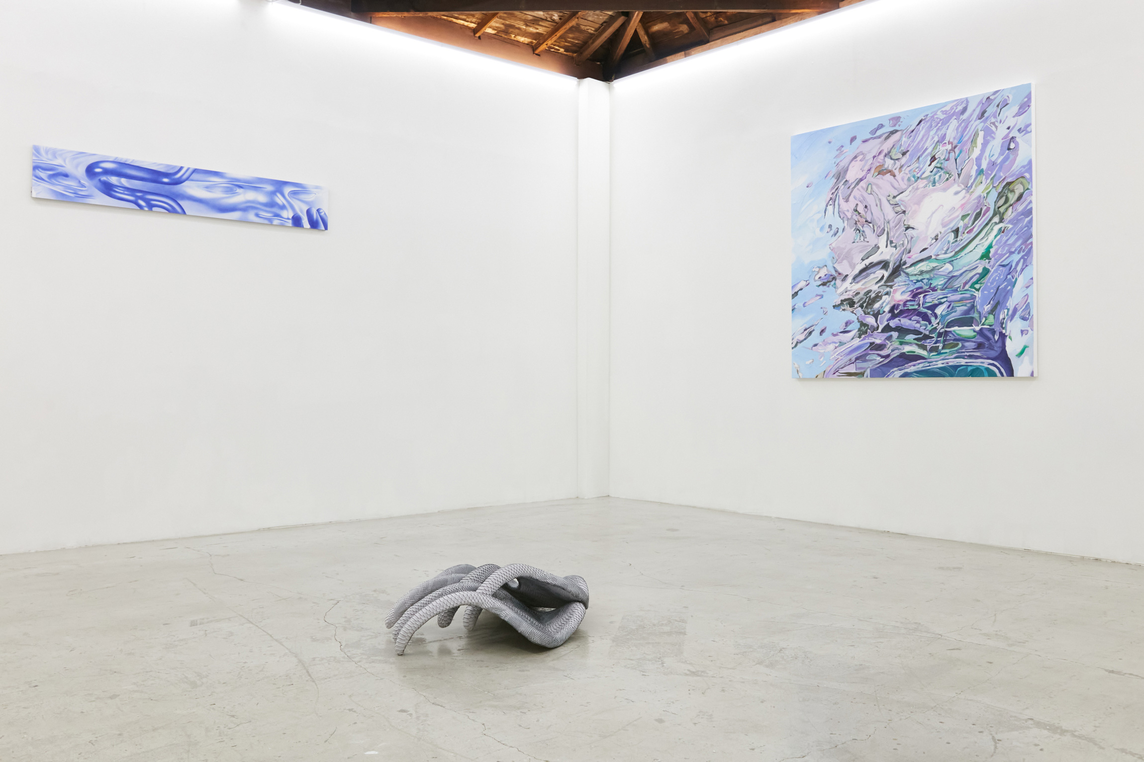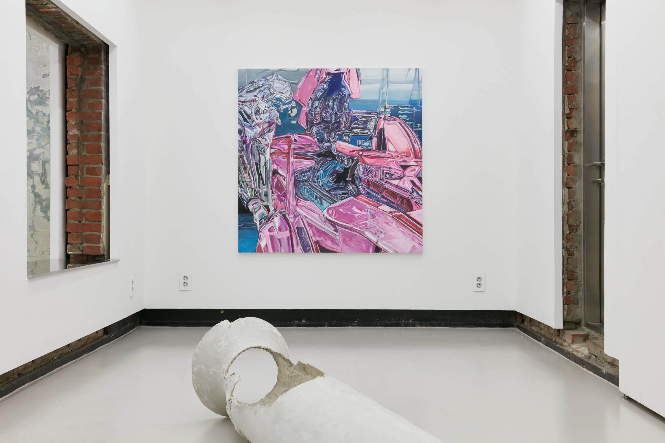 은 내연기관의 존재를 기념하고, 변화하는 흐름 속, 만질 수 있는 유형의 것들의 집합인 조각 및 회화에 대한 찬사를 보낸다. 그리고 조각과 회화 역시 하루가 다르게 생겨나는 내일의 매체 속에서, 오늘의 역사와 물질성이 사라지 고 모든 것이 미래의 대안으로 귀속될지라도 원시시대 때부터 이어져온 그들의 깎고 그리는 정체성은 다가오는 구속력을 해 제하고, 3개의 축, 그들의 독립적인 좌표 위에 언제나처럼 건재할 것임을 알린다. 밟을수록 쥐어짜듯 급격히 올라가는 자연흡 기엔진의 RPM처럼 오늘도 여덟 작가들의 숨결과 땀이 스며들어있는 조각과 회화는 우리가 촉각으로 느낄 수 있는 세계와 인 접해있는 변화의 소용돌이 한가운데에서, 지긋이, 그리고 깊게, 그들의 고유하고 실재하는 지문을 남긴다. Anna Uddenberg