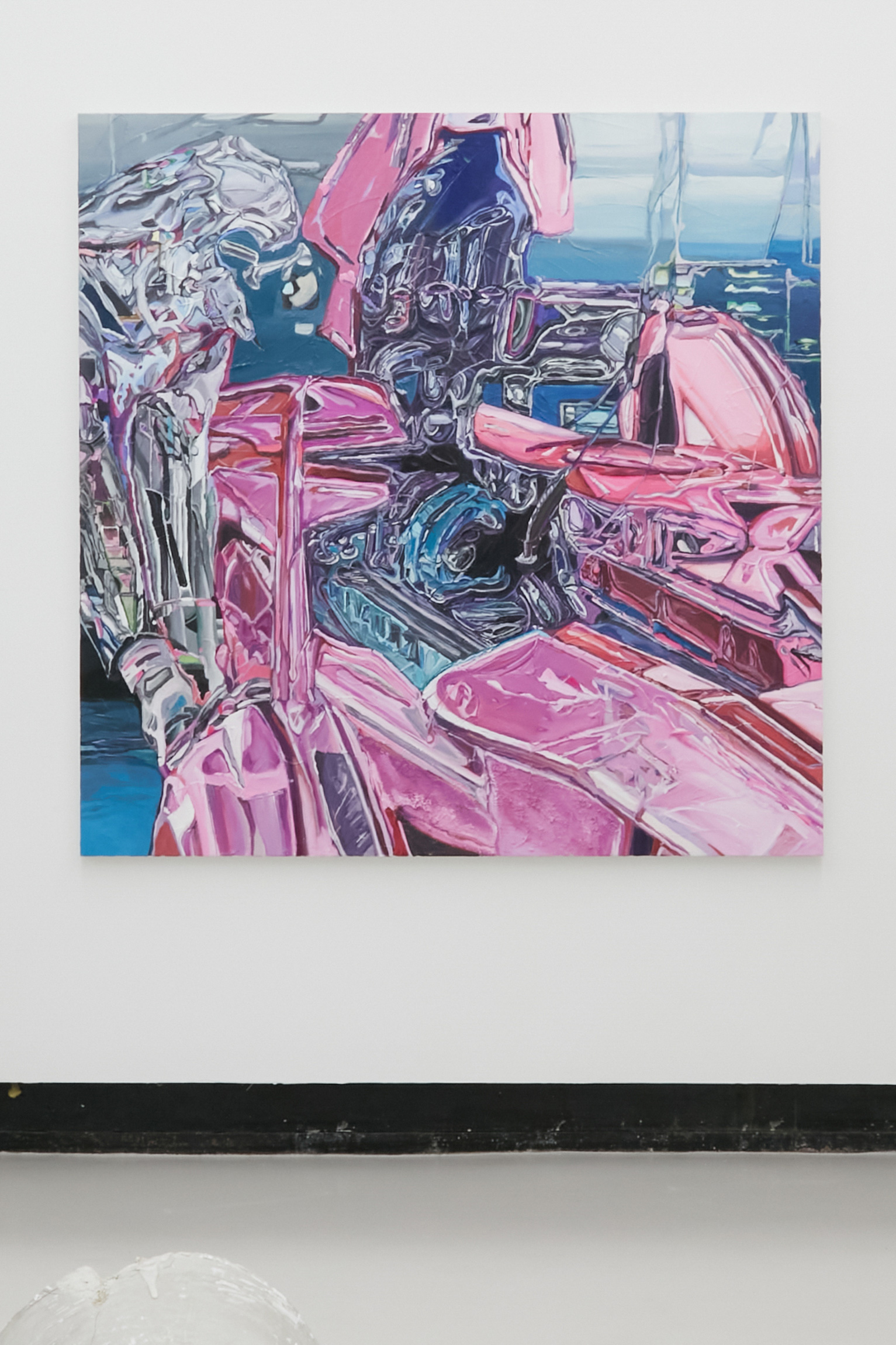 작업을 통해 과거의 아니메로 접속하고, 그것을 현재로 끌어와 작가의 디지털 필터가 적용된 회화를 그려내는 김민희는 이번 전시에서 1990년대 자동차 레이싱 애니메이션인 ‘사이버 포뮬러’ 기반의 작업을 선보인다. 그의 작업 속 등장하는 인물 중, 슈트룸젠더의 드라이버 마리 알베르트 루이자와 그의 머신 슈피겔은 메르스데스 벤츠의 고성능 라인업 차량, 그 중 모터 스포츠카의 전신이자 롱노즈 숏데크(Long nose short deck)의 대표 격인 SLS AMG와 연결되는데, 이는 결국 벤츠의 AMG 포뮬러팀이 현재 F1에서 보여주는 압도적인 퍼포먼스와도 이어진다. / Mercedes Benz SLS AMG - V8, N/ASebastian Burger
