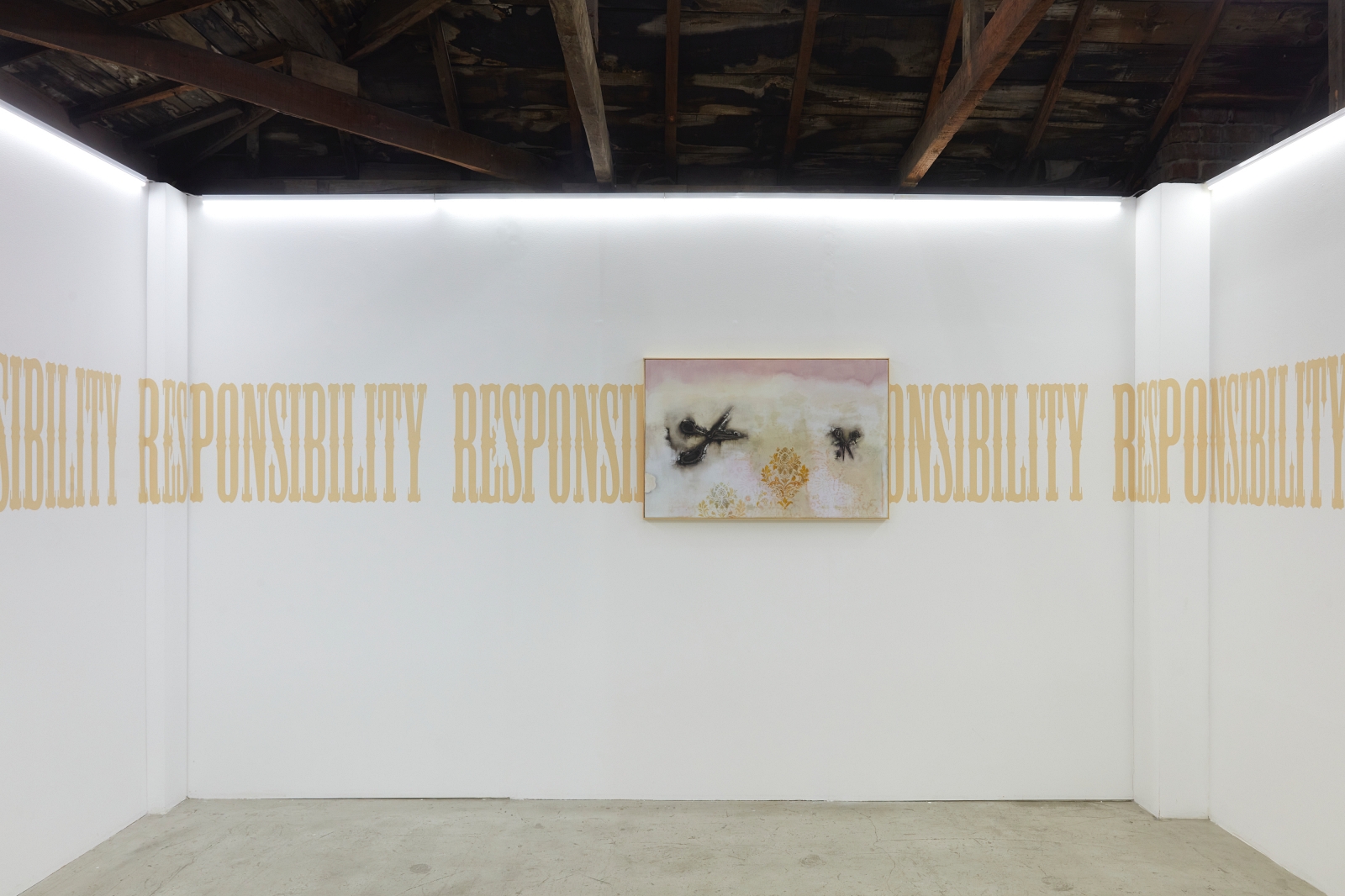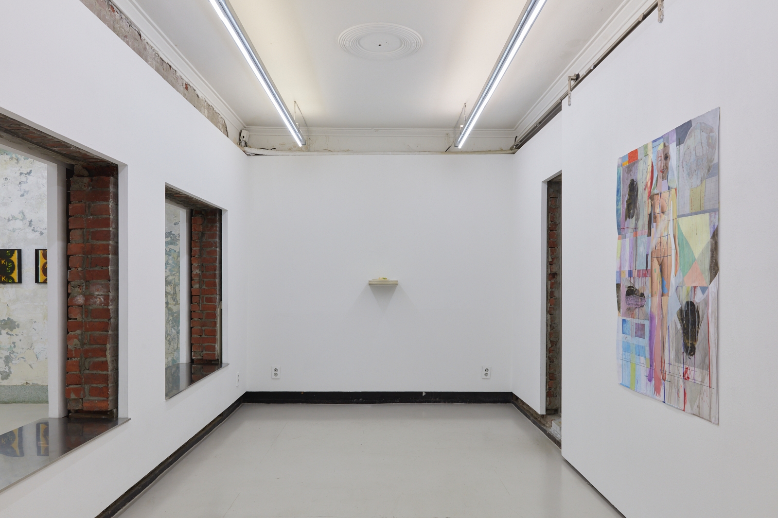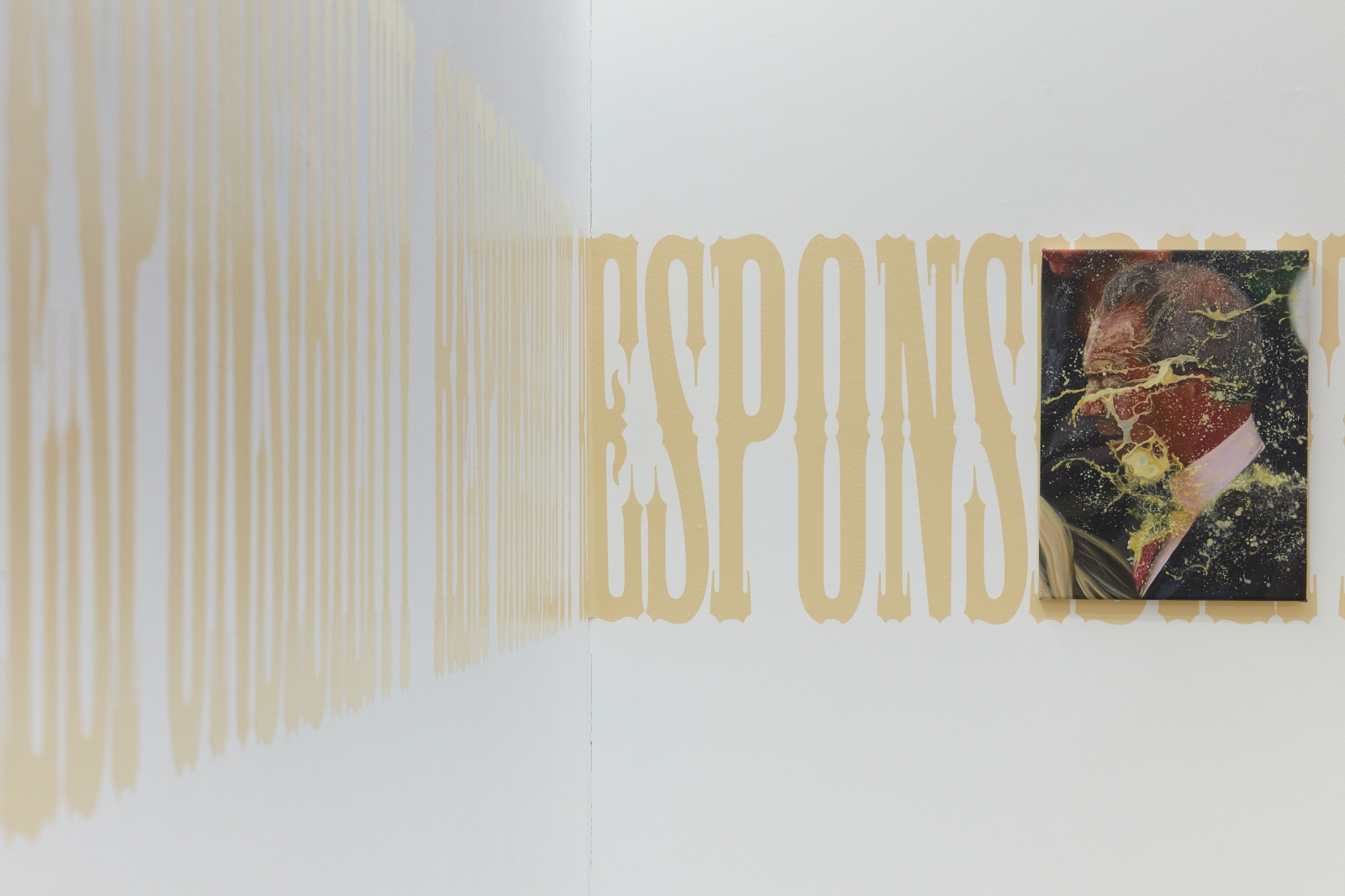 L.A. Paul’s definition of a ‘transformative experience’ underpins the very nature of contemporary art, where experimental applications to materials often offer un-expected outcomes. This is a method of play, chance and the subconscious, resulting in gestures that can offer possibilities even far beyond any initial artistic intentions. Works by Alexandra Metcalf, Jin Han Lee and Justin Chance involve blurring, smearing and rubbing; performative gestures which could not have been precisely envisioned at the stage of the blank canvas. Steve Bishop sculpts an image of an abandoned scene, where the ghost of a half-eaten cake emulates the unexpectedness of a found object. Lewis Teague Wright’s photographic triptych offer the opening credits to a film that will never been made and Mira Mann has built a musical instrument, but with a transgressive use; to be seen and not played.
