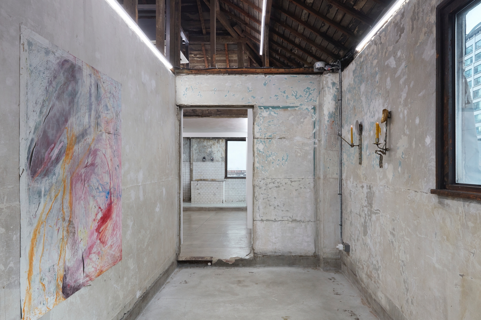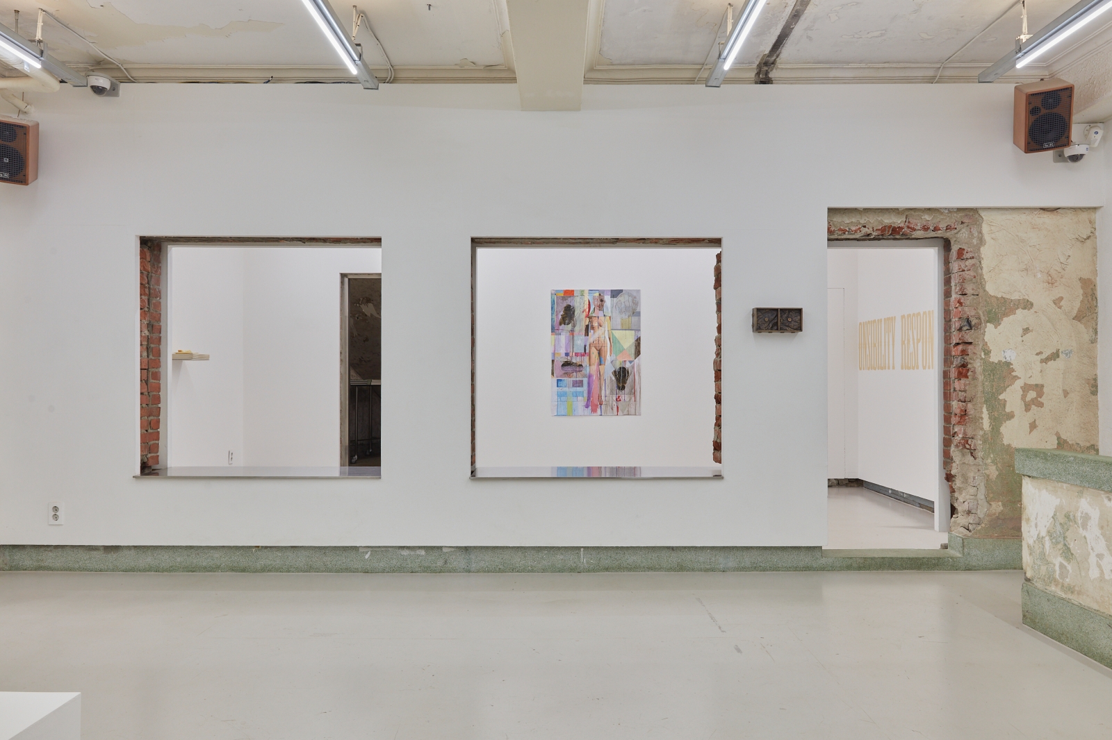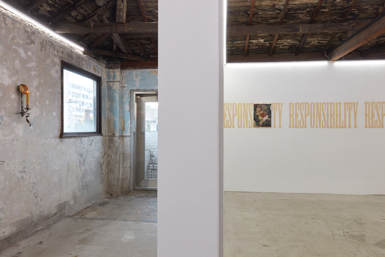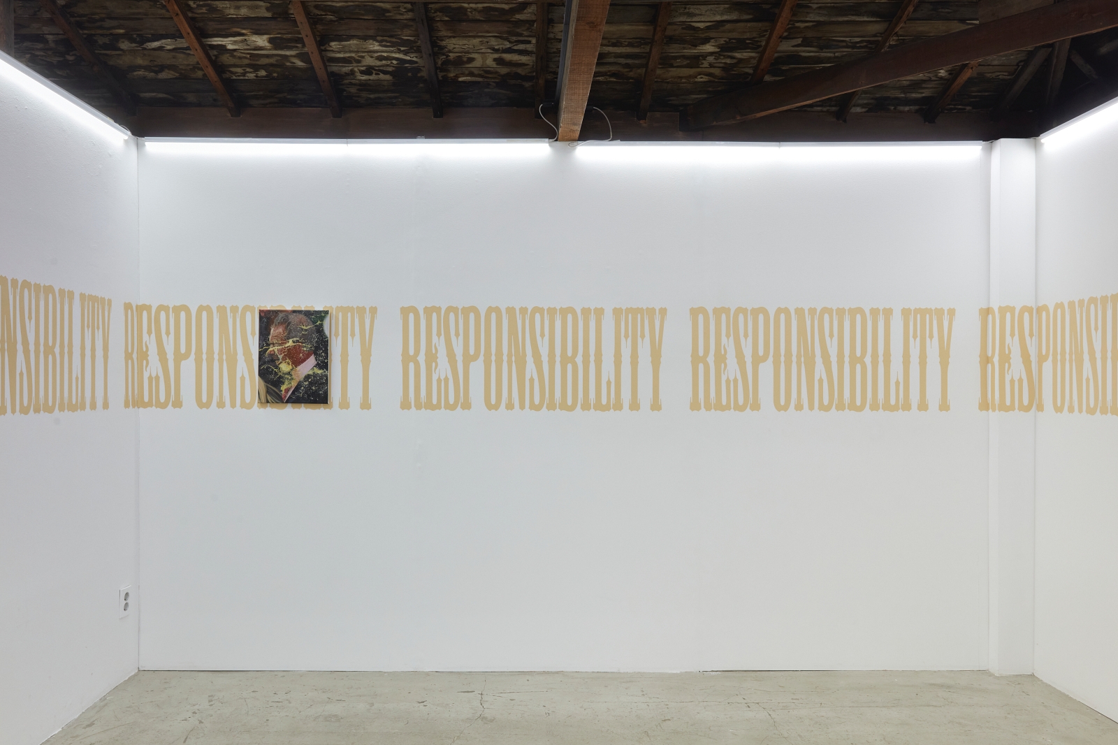 L.A. Paul’s definition of a ‘transformative experience’ underpins the very nature of contemporary art, where experimental applications to materials often offer un-expected outcomes. This is a method of play, chance and the subconscious, resulting in gestures that can offer possibilities even far beyond any initial artistic intentions. Works by Alexandra Metcalf, Jin Han Lee and Justin Chance involve blurring, smearing and rubbing; performative gestures which could not have been precisely envisioned at the stage of the blank canvas. Steve Bishop sculpts an image of an abandoned scene, where the ghost of a half-eaten cake emulates the unexpectedness of a found object. Lewis Teague Wright’s photographic triptych offer the opening credits to a film that will never been made and Mira Mann has built a musical instrument, but with a transgressive use; to be seen and not played.