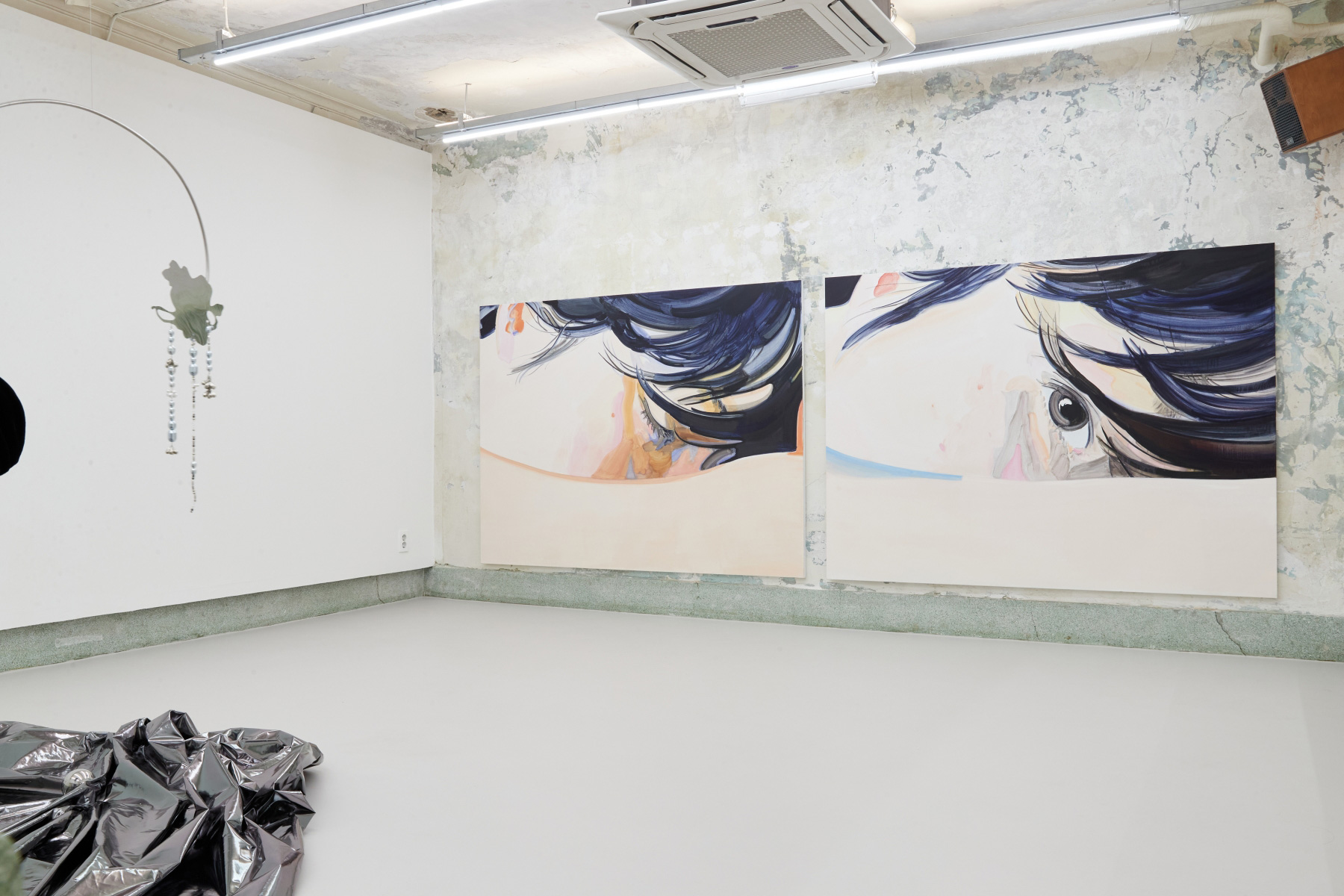 우한나는 모빌 구조의 설치 조각 (Floating Well, 2022)을 시도하므로 작업에서 안고 가야하는 양가적인 조건들의 동등한 상태에서 내적 갈등이 필연적으로 따라올 수 밖에 없는 작가의 숙명에 대해 이야기한다. 이성과 감성, 좌뇌적 사고와 우뇌적 사고의 영역에 생각들을 토스하는 과정에서 선택의 순간들이 축적되면서, 그것이 곧 자아 혹은 알터 에고의 모양새를 만들어낸다. 그리하여, 양극단에서 고민하는 수많은 자아들은 자신을 투영하는 신체기관 혹은 양성의 신체를 떠오르게 하는 구조로 구현하면서 본능적으로 서로 비등해야만 한다는 관성같은 것에 놓이게 된다. 결국에는 작가가 처한 자기 모순의 과정들은 신체로부터 파생된 각기 다른 형태와 무게의 부산물에 의해 즉흥적으로 포착한 실루엣의 거울과 마주보면서 투영된다. 반면에, 작가가 납득의 시간들을 거치기 위해 고민하는 행위 자체가 균형을 만들어가는 과정임을 스스로 받아들이는 순간에, 우한나의 시선은 객관화되어 오롯이 자신과 관객의 상만 담을 수 있는 거울 부조 조각(See Me Again, 2022)과 마주하게 된다. 모양자로 아무것도 지칭하지 않는 외곽선을 여러 차례 긋고, 수정을 통해 우연치 않게 만들어낸 심장 모양의 거울 조각은 우리의 의식 깊숙이 고정된 페르소나와 변화할 수 밖에 없는 자아들을 들여다보도록 한다(Show You, 2022). 본 전시에서 기존 작업과 화려하게 사용되었던 색을 제거하고 다양한 천의 질감과 광도에 집중한 무채색 덩어리의 표면은, 그간 미숙하고 시끄러웠던 오합지졸의 미묘한 차이들을 더 명징하게 들여다볼 수 있도록 한다.'싱크 카리나'