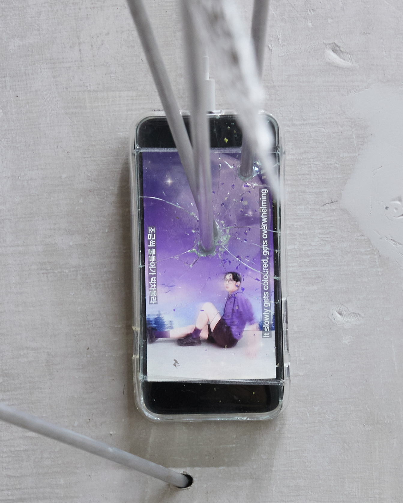 Single channel video, Iphone, Aluminum pipe, Acrylic, Glass, Resin
