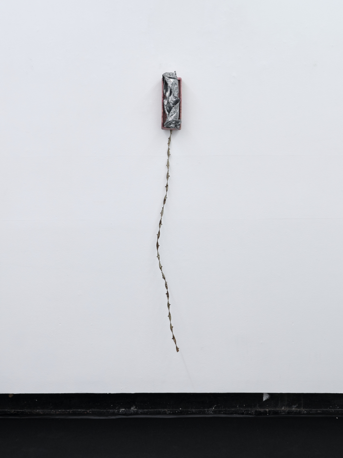 “Chain-of-thought” traces these parallel dynamics across four bodies of work that reanimate obsolescing hardware. Accompanying Model Collapse, there are Twisted Pairs, a series of sculptures that resemble wall-mounted telephones, made from cast cow ears nestled into each other with a cord of corroded, barbed wire. As America’s “Last Frontier” was colonized in the 19th century, private cattle fencing became transmissions lines for the spread of telecommunications through rudimentary local networks, a precursor to the way data centers now graft onto power-plants. Every now and then Twisted Pairs emit a whistle to one another, like lost signals from a severed grid.