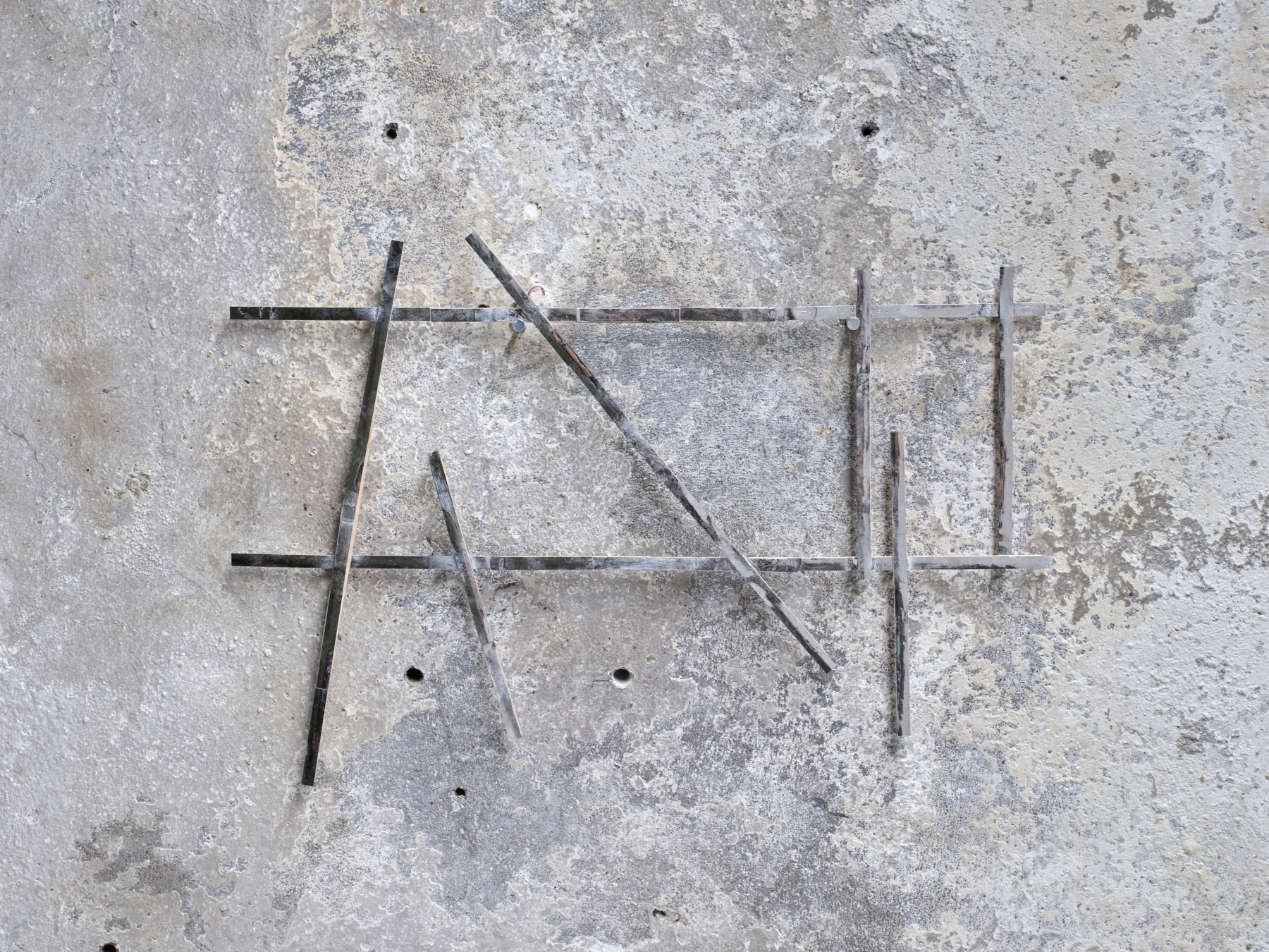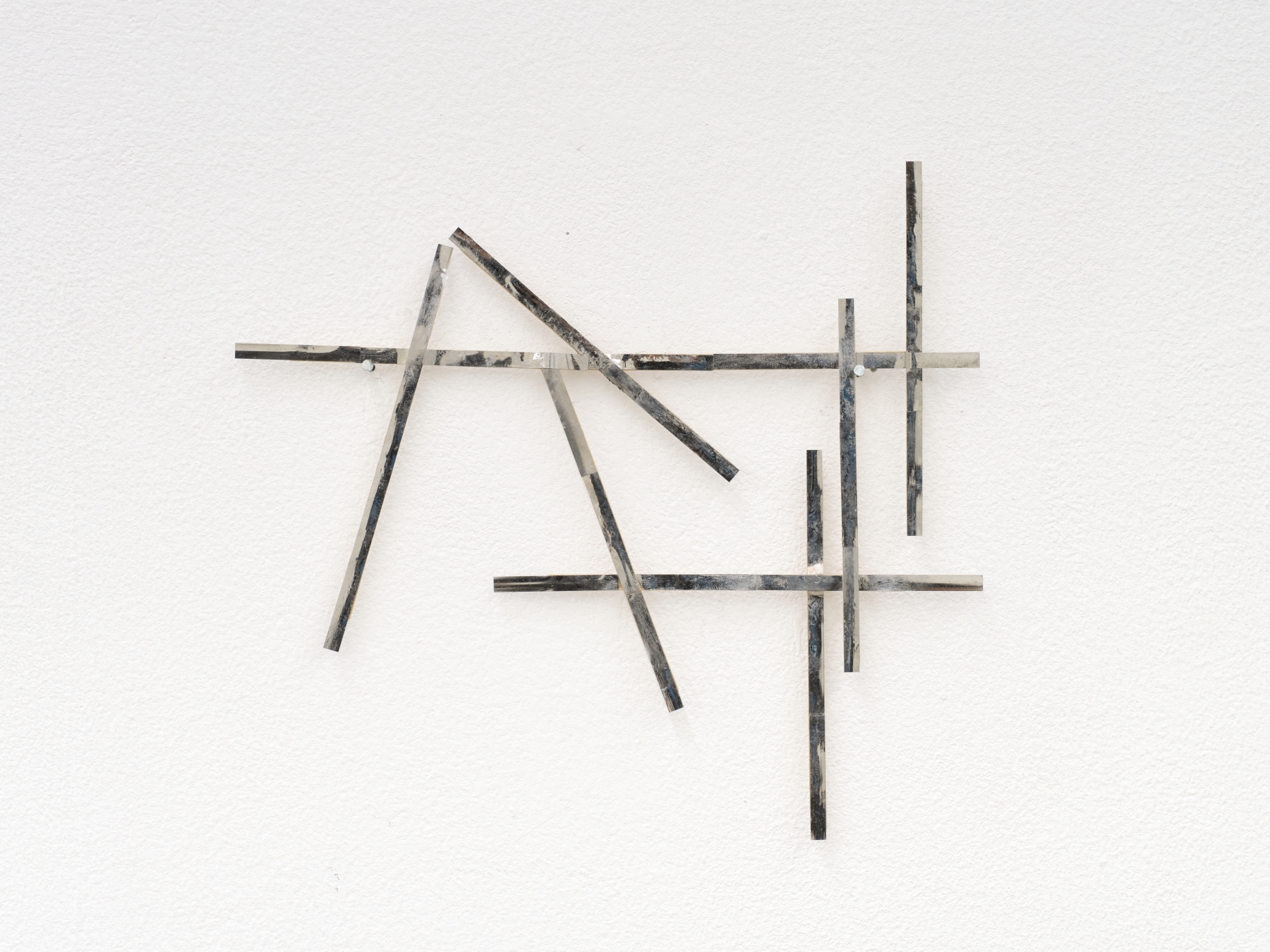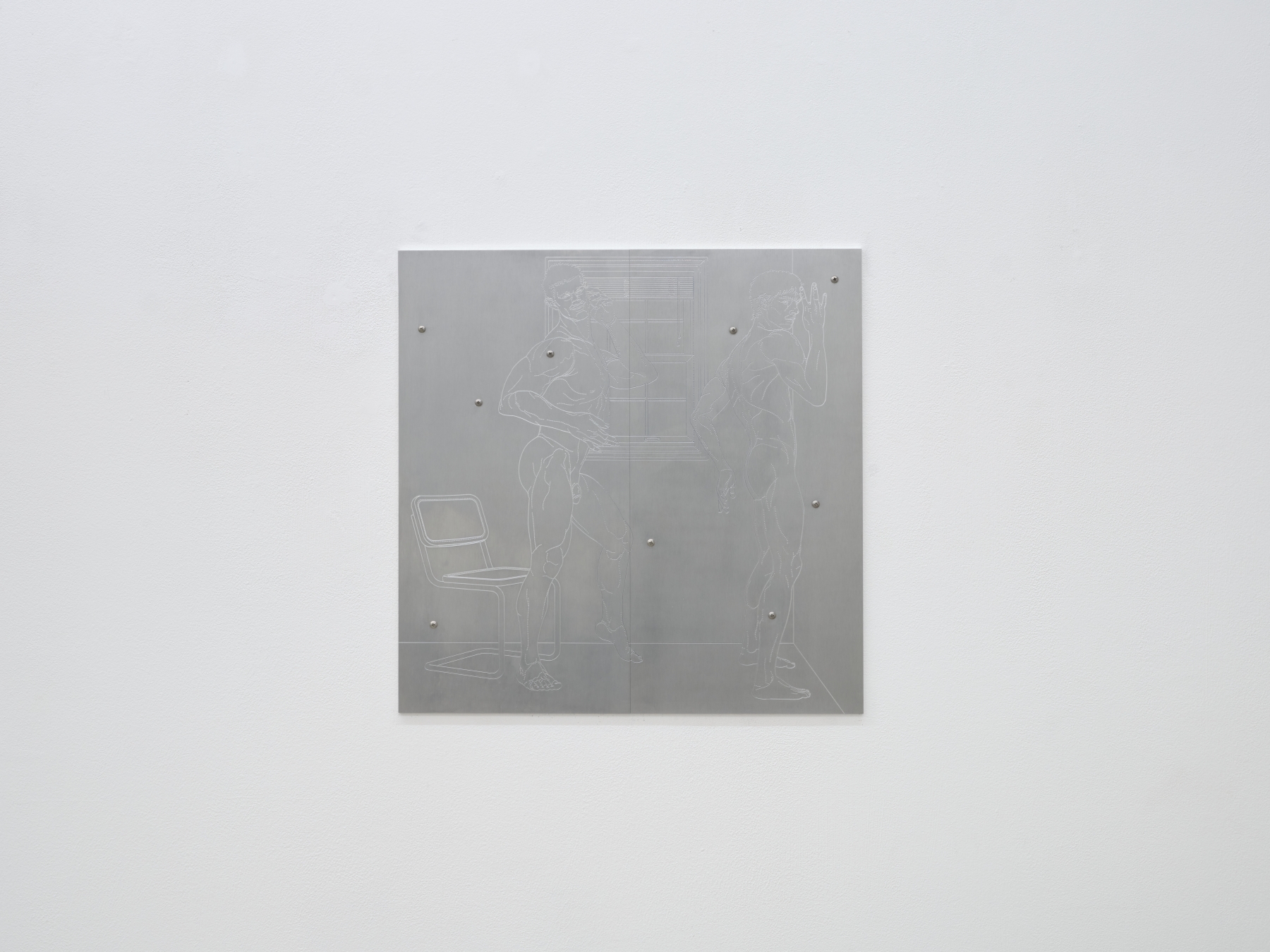 Hardy Hill scratches the surface of aluminium to expose the metal’s interior; Leonard Giller dismantles anti-theft magnets to reveal hidden structures. Sollee Kim raises sculptures once lying flat on the ground into vertical forms, reversing the depth and orientation of space—revealing what lay beneath and blurring the line between inside and out. Rosario and Simon distort and refract sightlines and scenery through dark glass structures formed by breath. Muyeong Kim leaves a void where water once stood, erasing the boundary between surface and interior. These works erase the centre and obscure the outlines of space, leaving form and meaning suspended in ambiguity. Arthur Marie removes focal elements from his paintings to destabilise the viewer’s gaze, while Mark installs vertical structures that redirect attention to the ground, denying access to the inner space. Henry Belden, in a video work of twin brothers recalling memories in the first person, dismantles the singular voice of narration and dislocates the position of presence itself. These works prompt a subtle disorientation, suggesting presence as something decentered and gently trembling.