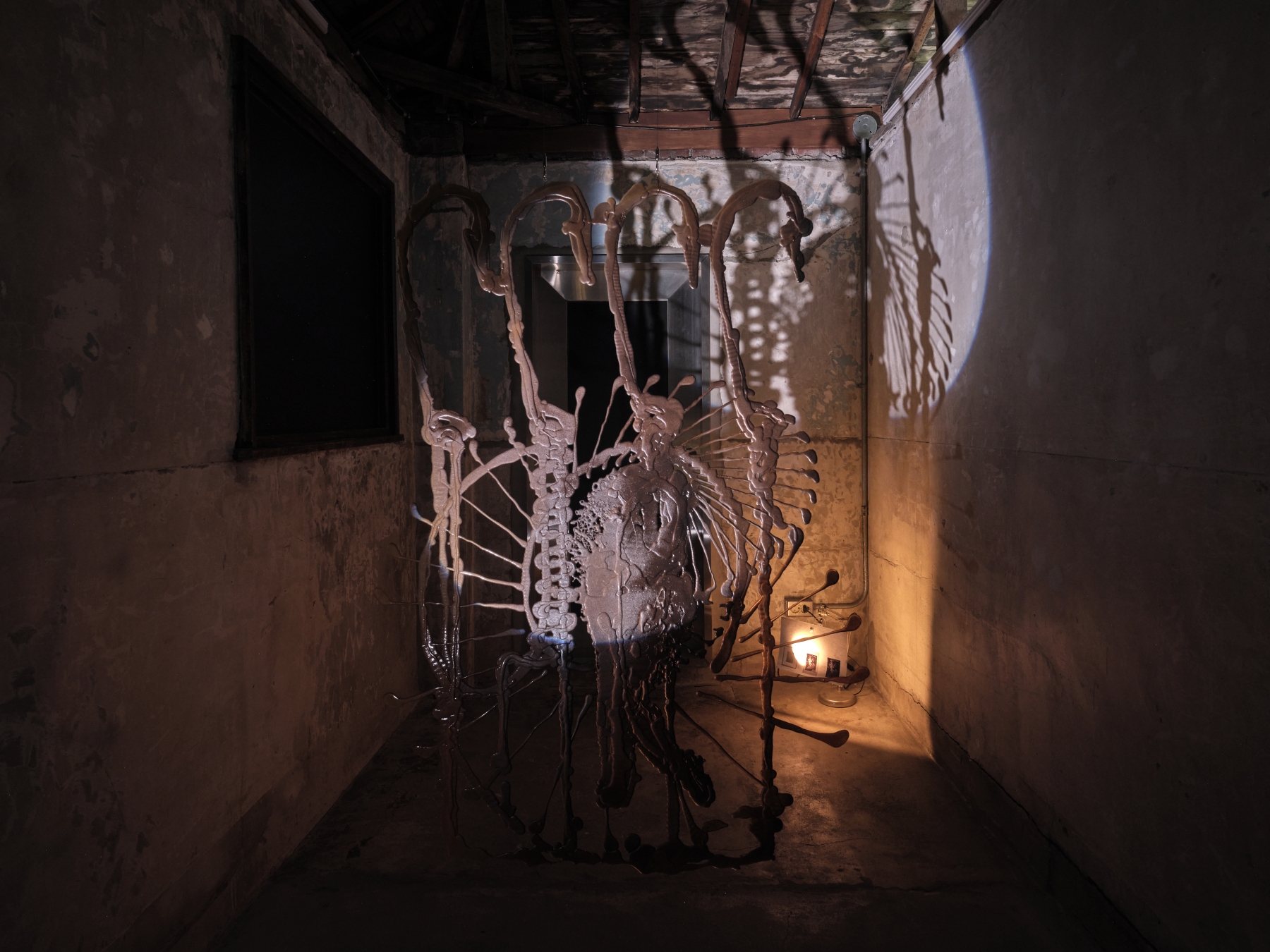하디 힐은 알루미늄 표면을 긁어 금속의 내부를 드러내고, 레너드 길러는 도난 방지용 자석을 해체해 숨겨진 구조를 노출시킨다. 김솔이는 바닥이었던 조각을 수직으로 세워 공간의 내부와 깊이를 뒤바꿔 놓는다. 이 과정에서 표면 아래 있던 숨겨진 영역이 나타나고 재료의 안과 밖은 서로 교차한다 로사리오와 사이먼은 숨을 불어 만든 어두운 유리 구조물을 통해 주변의 풍경과 시선을 왜곡하고 굴절시킨다. 김무영은 물이 사라진 자리에 빈 공간을 남겨 표면과 내부의 경계를 흐리게 만든다. 이 작업들은 뚜렷한 중심을 비워버리고, 공간의 윤곽을 희미하게 지워 형태와 의미를 모호한 상태에 둔다. 아서 마리는 회화에서 중심이 될 만한 요소를 제거해 시선을 불안정한 상태에 두고, 마크는 수직 구조물을 설치해 관람자의 시선을 바닥으로 향하게 만들어 내부로의 접근을 막는다. 헨리 벨든은 쌍둥이 형제가 1인칭 시점으로 기억을 회상하는 영상 작업을 통해 말하기의 중심을 해체하고, 존재의 위치를 불확정적인 상태로 흔들어 놓는다. 이 작업들은 존재가 안정된 중심을 잃고 미세하게 흔들리는 감각을 유도한다.
